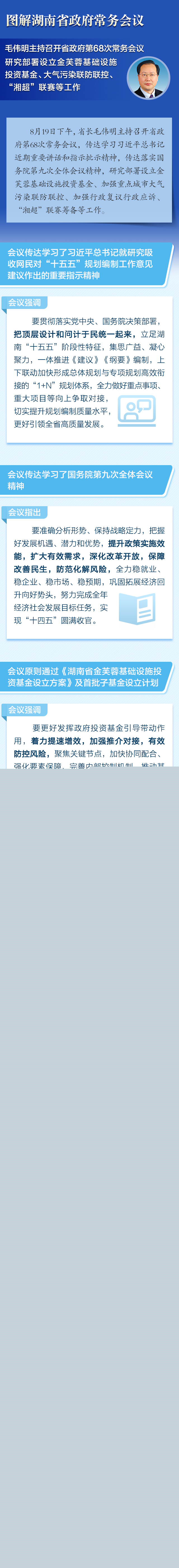 【图解】8月19日省政府常务会议:研究设立金芙蓉基础设施投资基金、大气污染联防联控、“湘超”联赛等