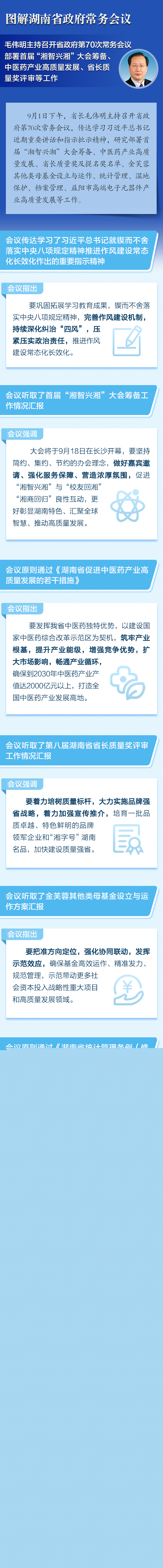 【图解】9月1日省政府常务会议:部署首届“湘智兴湘”大会筹备、中医药产业高质量发展、省长质量奖评审等工作