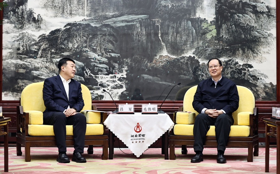 毛伟明感谢中国大唐长期以来对湖南发展的大力支持并简要介绍湖南能源工作。他说,近年来,湖南聚焦“够不够”“绿不绿”“优不优”三个核心问题,不断提升能源保供能力、推进绿色低碳转型、深化体制机制改革,加快建设具有湖南特色的新型电力系统。“十四五”期间,湖南单位GDP能耗累计下降14.9%,风电、光伏发电装机成为全省第一大电源;能源供应由“硬缺口”转为“紧平衡”,迎峰度夏期间实现全社会“无感”用电,并从电网末端转向区域电力交换枢纽中心。毛伟明指出,经济社会高质量发展离不开能源的坚强保障。“十五五”期间,希望中国大唐进一步加大在湘投资布局,持续深化与湖南企业的务实合作,积极参与重大能源项目建设,携手共建清洁低碳安全高效的能源体系。