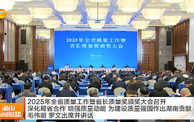 视频丨2025年全省质量工作暨省长质量奖颁奖大会召开 深化局省合作 培强质量动能 为建设质量强国作出湖南贡献 毛伟明 罗文出席并讲话