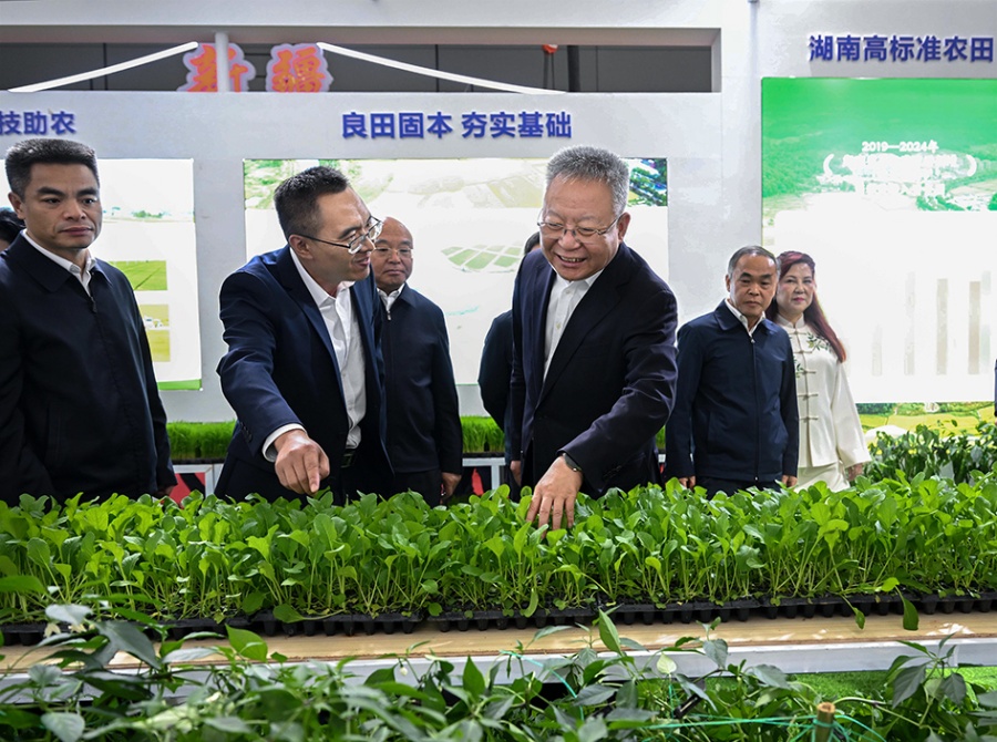 沈晓明先后来到良田良种良机良法融合成果、水肥一体化设备、现代设施农业、粮油大省精品等展区,以及省际交流馆、湖南市州形象馆,与参展单位负责人交流,了解展销情况。他指出,要用好用足展会平台,不断增加优质农产品供给,打造更多老百姓信得过的放心品牌,让群众享受现代农业发展成果。要强化农业科技创新,大力推进农业机械化、智能化,不断提升农业综合生产能力和质量效益。要坚定市场化办展方向,把办展和招商更好结合起来,持续提高办展能力和服务水平。
