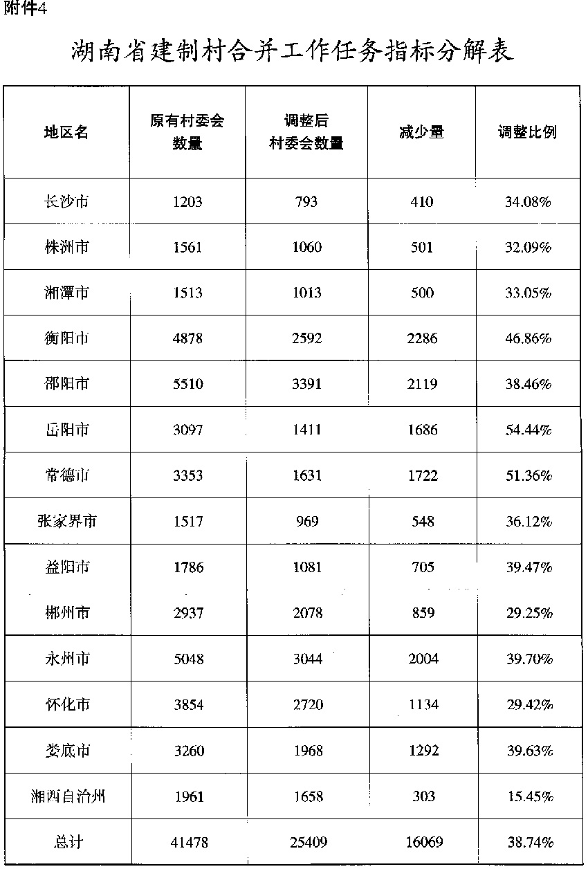 4.湖南省建制村合并工作任务指标分解表