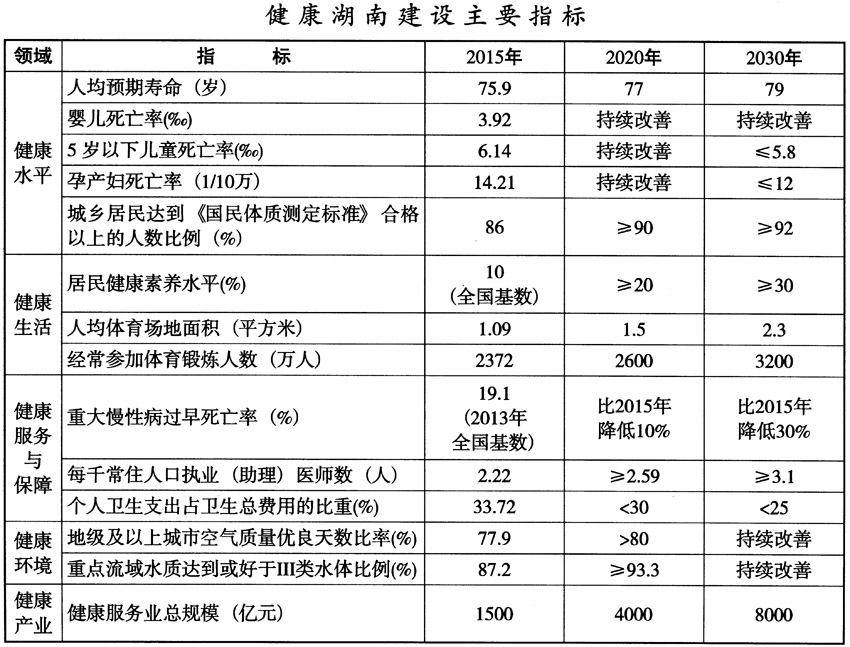 湖南省贯彻落实 《“健康中国2030”规划纲要》实施方案