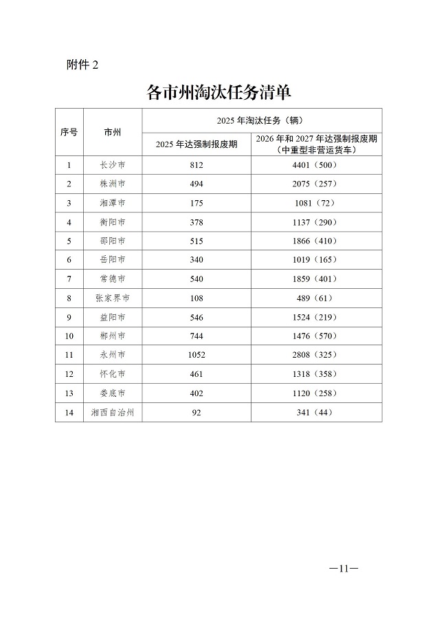 2025年底前,全面完成2025年达到强制报废期的老旧非营运柴油货车淘汰任务6659辆;以2026年和2027年达到强制报废期车辆为重点,力争提前淘汰老旧非营运柴油货车22514辆。