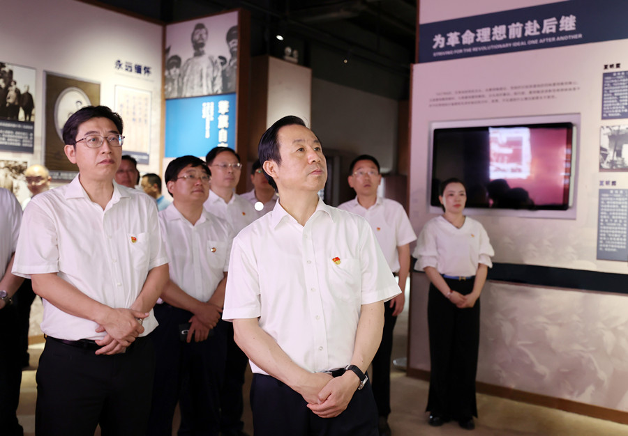 许达哲一行参观夏明翰生平事迹陈列馆。