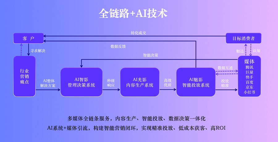 项目背景。创研股份秉持“以技术驱动营销”的理念,着力打造赋能企业增长的全链路AI营销服务生态,通过自主研发的创影营销应用大模型,以大数据、智能算法、AIGC、营销自动化等技术,整合头部媒体资源,为企业提供AI数字技术、AI数字运营、AI数字媒介产品服务矩阵,并着力面向电商、教育、快消等行业提供AI营销整体解决方案,助力企业可持续增长。