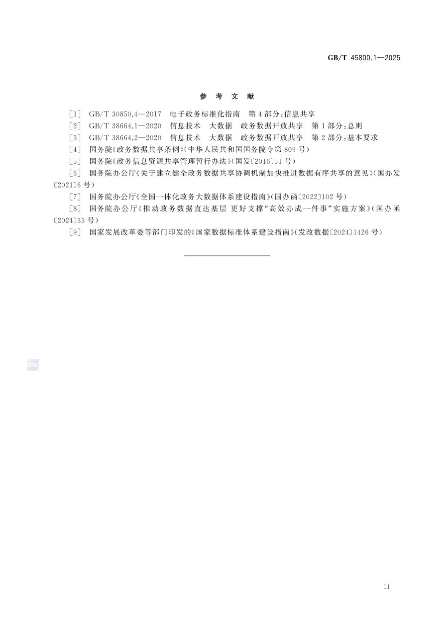 《全国一体化政务大数据体系 第1部分:总体框架》(GB/T 45800.1-2025)