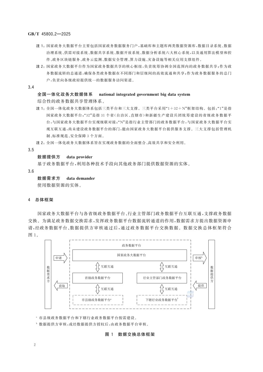 《全国一体化政务大数据体系 第2部分:数据共享交换要求》(GB/T 45800.2-2025)