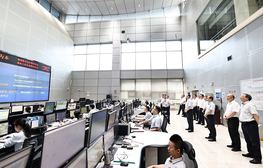 长沙黄花机场运行控制指挥中心是机场的“智慧大脑”,去年成功保障3121.81万人次旅客平安出行,旅客吞吐量创历史新高。毛伟明一行详细了解机场枢纽建设和运行保障情况,指出要进一步加快精细化、专业化、智慧化改造,助力人畅行、货畅通。