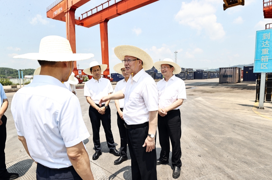 永州陆港项目规划建设吞吐量超千万吨的港口,建成后将成为对接东盟、非盟的区域性综合物流枢纽。毛伟明一行查看了项目一期建设情况,强调要精准把握流向、流量、流效,完善公共配套服务,加快建设“公铁河海”多式联运的集疏运体系,持续降低社会物流成本。要放大集散地功能作用,不断壮大临港经济、通道经济、枢纽经济,培育新增长点。