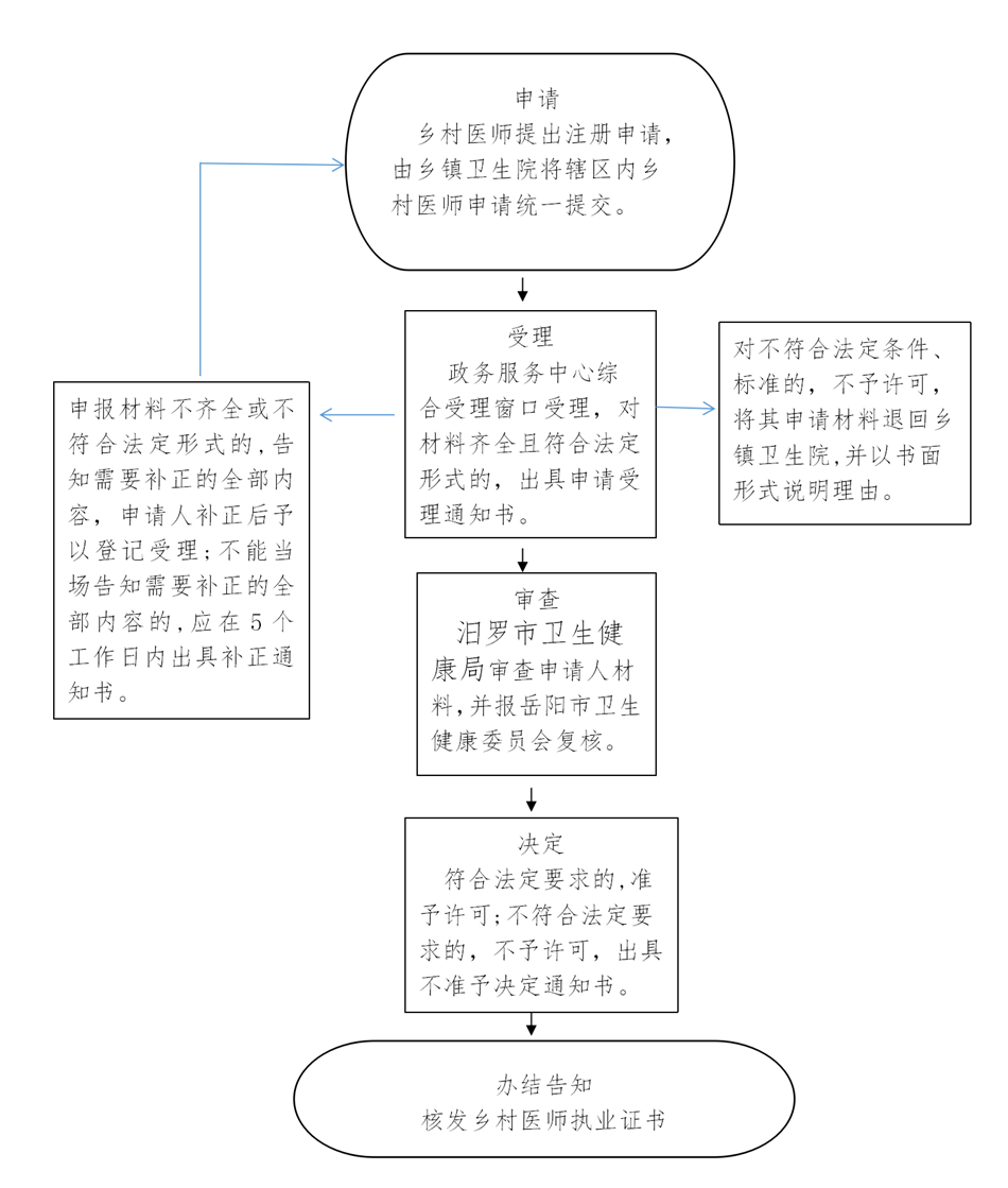 一、乡村医生向所在乡镇卫生院提交申请材料,乡镇卫生院对所交资料进行收集、初审并签署审查意见,由乡镇卫生院将辖区内乡村医生申请统一提交。