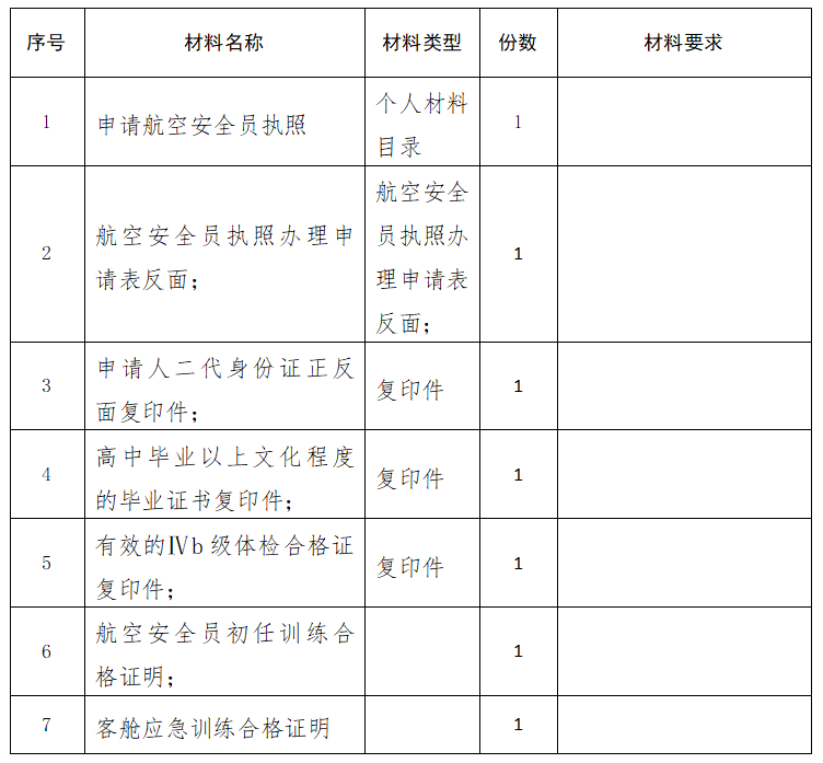 “我要申请航空安全员资格认定”办事指南
