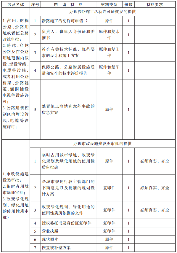 1. 跨越、穿越公路及在公路用地范围内假设、埋设管线、电缆等设施,或者利用公路桥 梁、公路隧道、涵洞铺设电缆等设施许可;