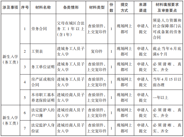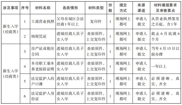 一、事项名称:我要办理新生入学(进城经商务工人员随迁子女)