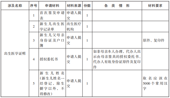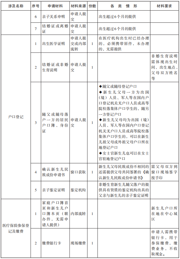 《出生医学证明》1 个工作日内,户口登记 (资料齐全) 1 个工作日内,医疗保险参保登记及缴费1 个工作日内