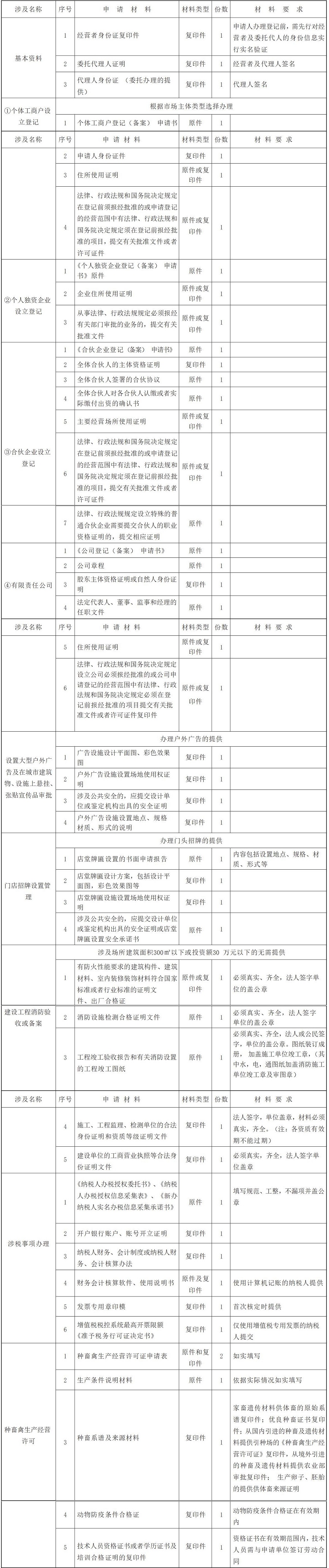 (一)市场主体设立登记;