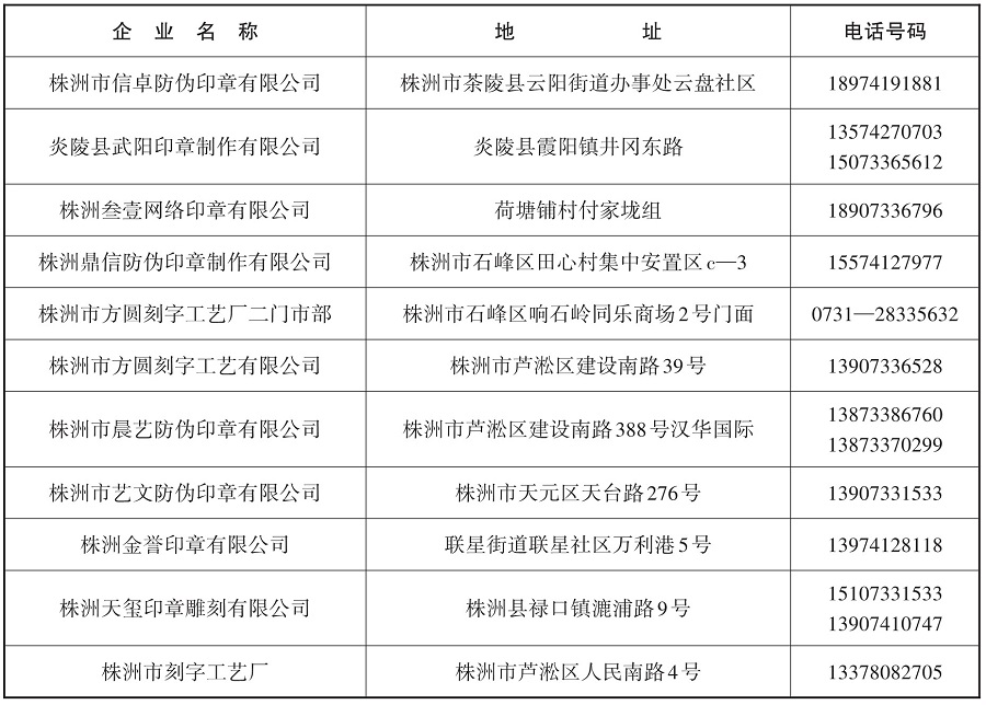 十五、公章刻制企业信息: