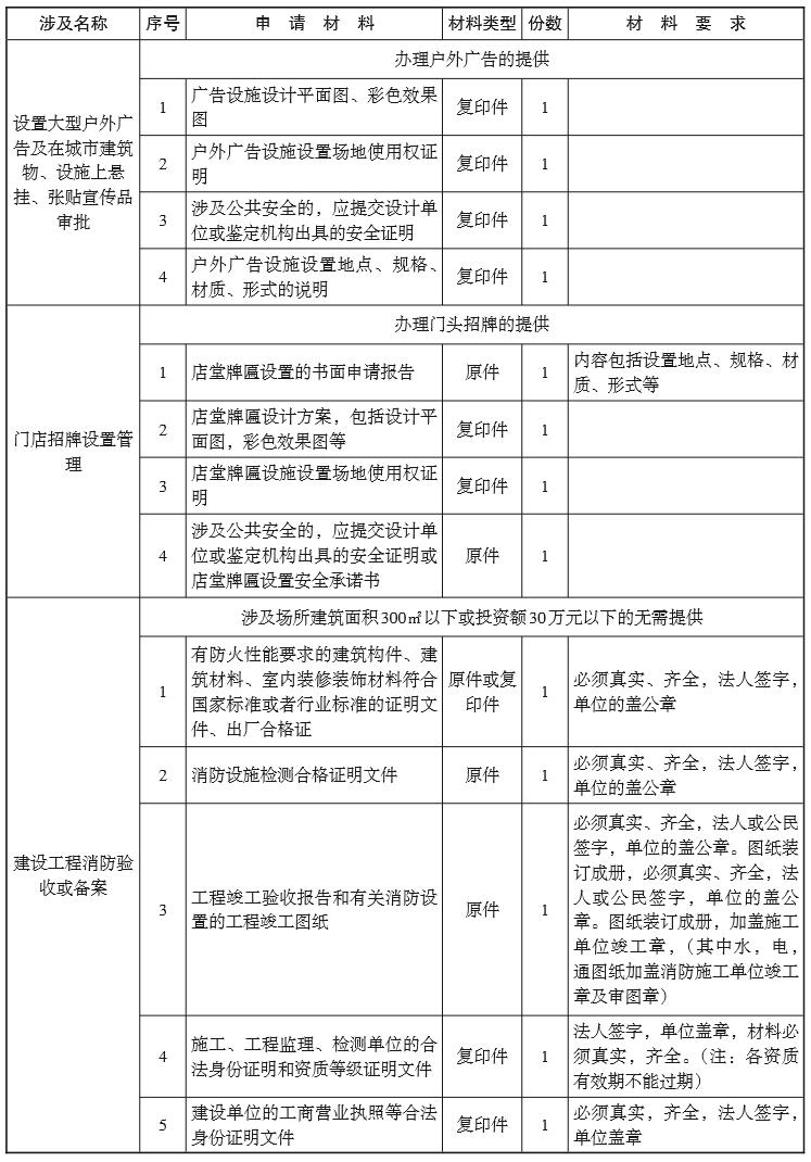 6. 门店招牌设置管理:在综合窗口申请时只需提交电子版材料,纸质版在管理人员现场监 管时提供。
