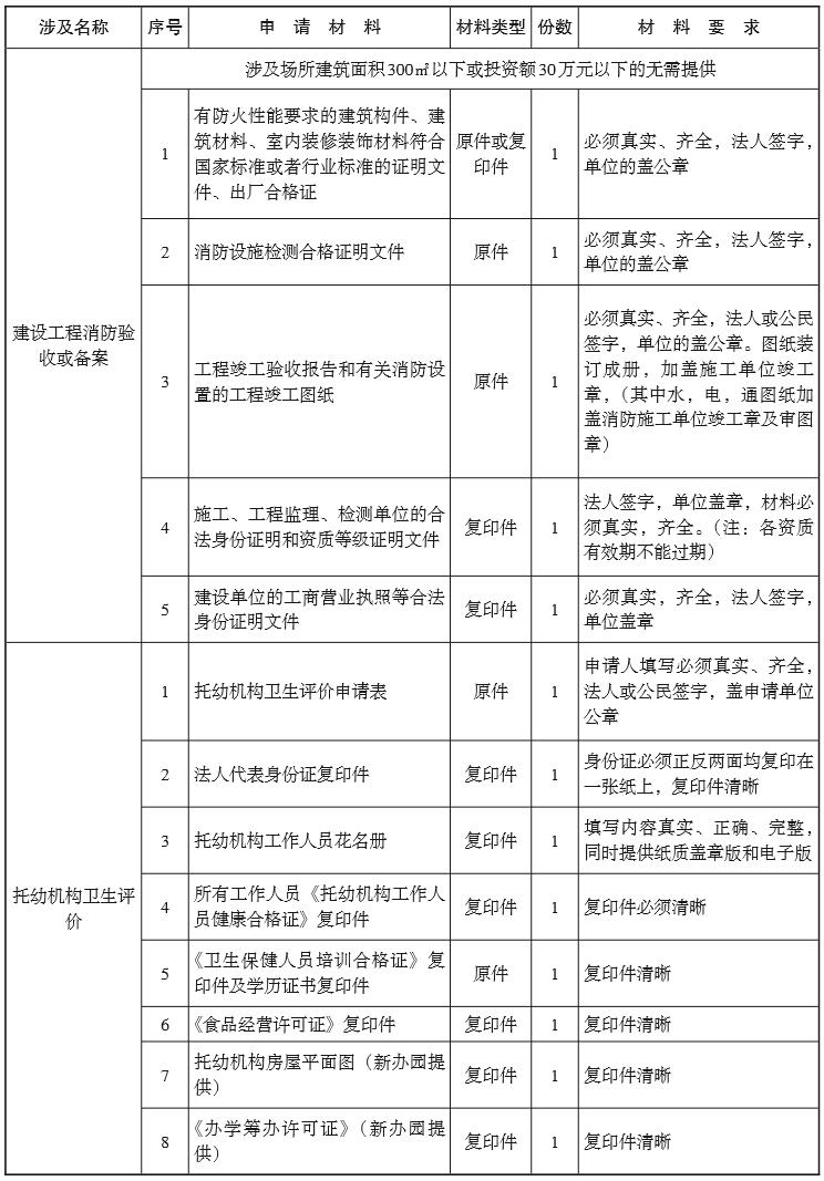 (六) 建设工程消防验收或备案 (备注:涉及场所建筑面积300㎡以下或投资额30 万元以下的无需办理);