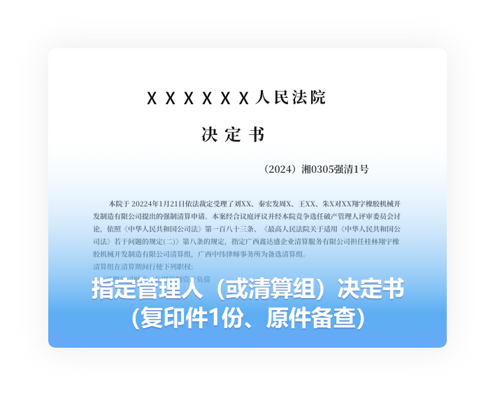 申请人应为取得人民法院《指定管理人(或清算组)决定书》的企业破产管理人(或清算组)
