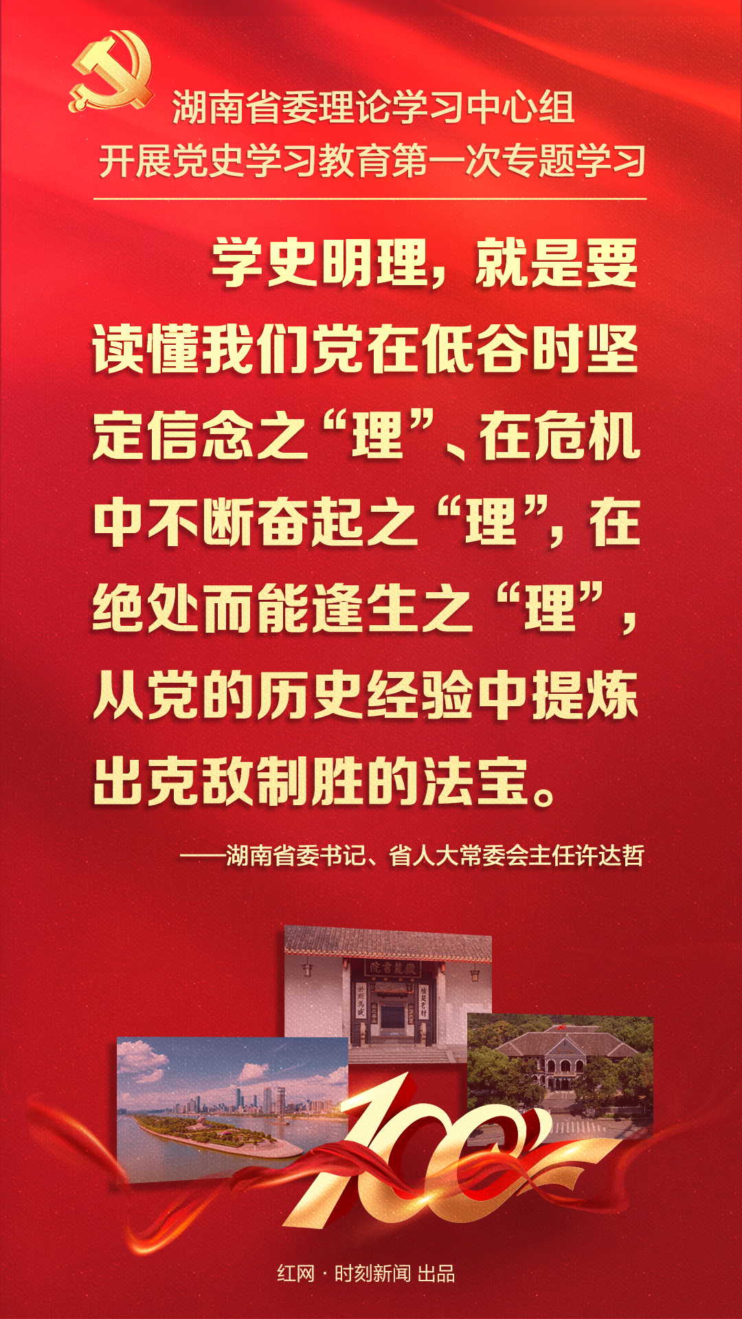 编者按:3月16日,湖南省委理论学习中心组开展党史学习教育第一次专题学习。在湖南第一师范学院礼堂,省委书记、省人大常委会主任许达哲以“从百年党史中汲取奋进力量”为题,为大家讲党史学习教育主题党课。