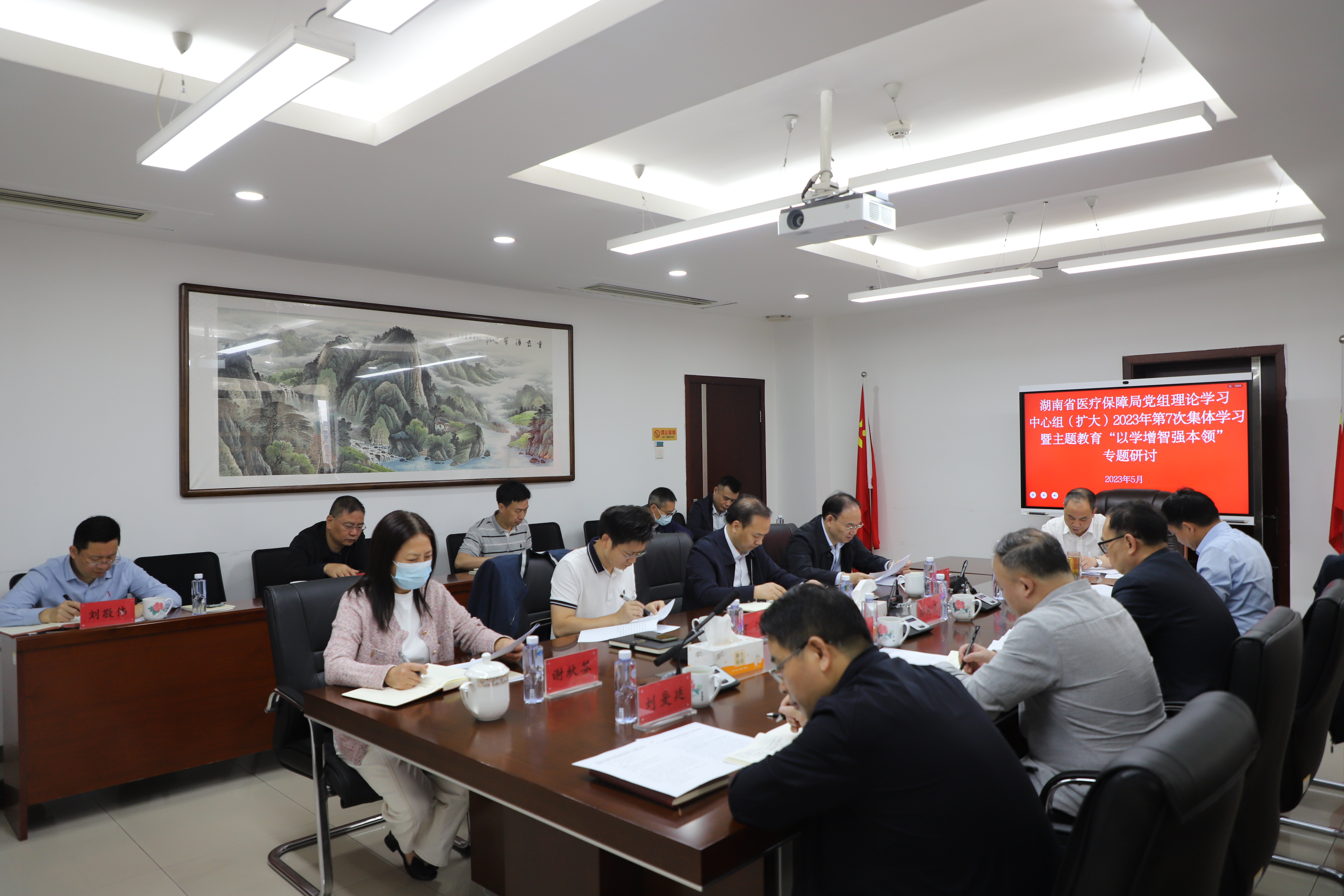 5月23日上午,省医疗保障局开展党组理论学习中心组(扩大)2023年度第7次集中学习暨主题教育“以学增智强本领”专题研讨,深入学习领会习近平总书记在二十届中央政治局第四次集体学习时的重要讲话、在听取陕西省委和省政府工作汇报时关于“以学增智”的重要讲话精神和十二届省委理论学习中心组第十七次集体学习暨“以学增智”专题研讨精神,集中学习《习近平新时代中国特色社会主义思想的世界观和方法论专题摘编》有关章节。局党组书记、局长王运柏主持学习并作交流发言,局党组成员、副局长孙兆泉作中心发言,局党组成员、副局长伍国用、张棉长参加学习并作交流发言;机关各处室、局属单位主要负责人列席学习。省委主题教育第九巡回指导组副组长罗德龙一行到会指导。