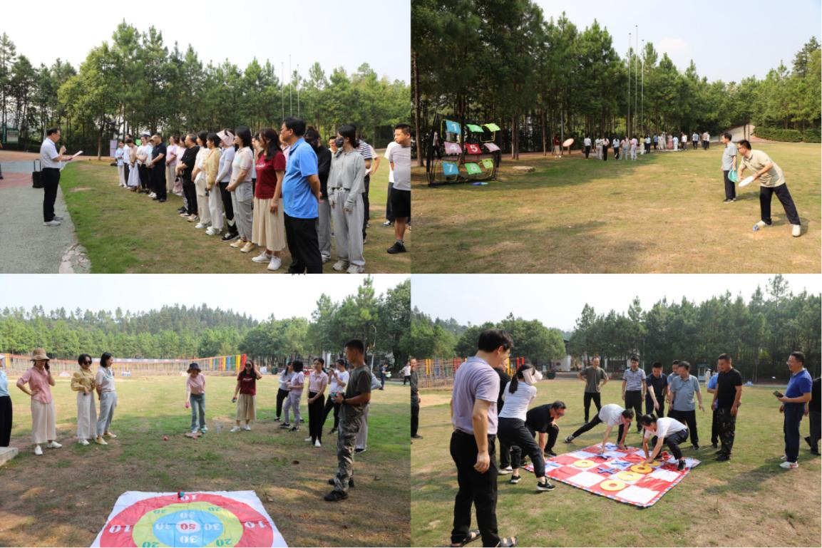 上午在湘潭市盘龙大观园,工会组织开展了“丢沙包”“飞盘打靶”“团队五子棋”“趣味探险桥”等丰富多彩的团建游戏,并组织开展环湖健步走比赛。