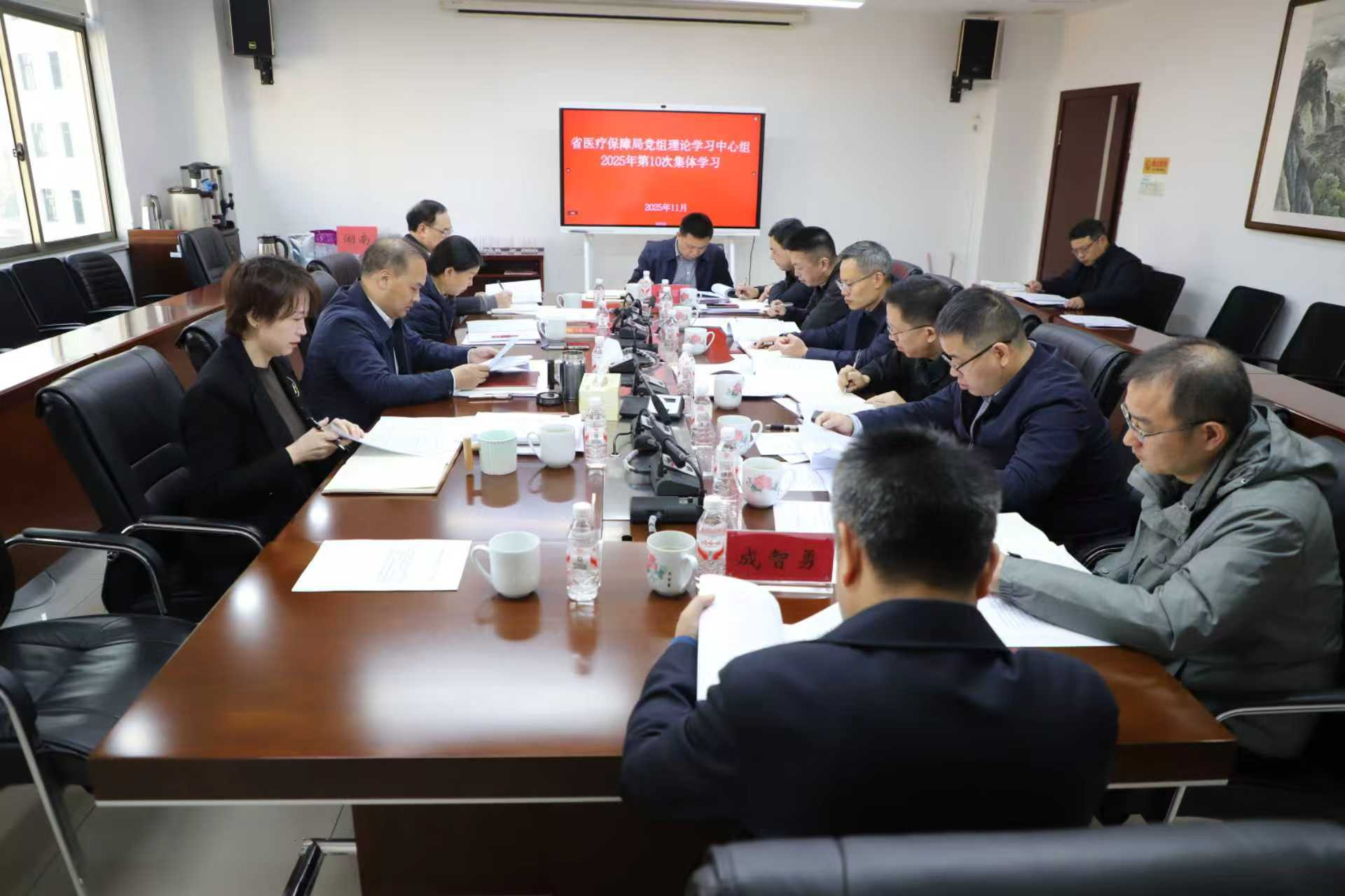 11月21日上午,省医疗保障局党组理论学习中心组举办2025年第10次集体学习,深入学习领会党的二十届四中全会精神,深入学习贯彻《中国共产党章程》,深入学习领会习近平总书记关于做好新时代党的统一战线工作的重要思想以及关于铸牢中华民族共同体意识的重要论述。局党组书记、局长张棉长主持学习并作中心发言,局党组成员、副局长李慧萍、邓洁云参加学习并作交流发言,局二级巡视员,局机关各处室、局属单位主要负责人列席学习。