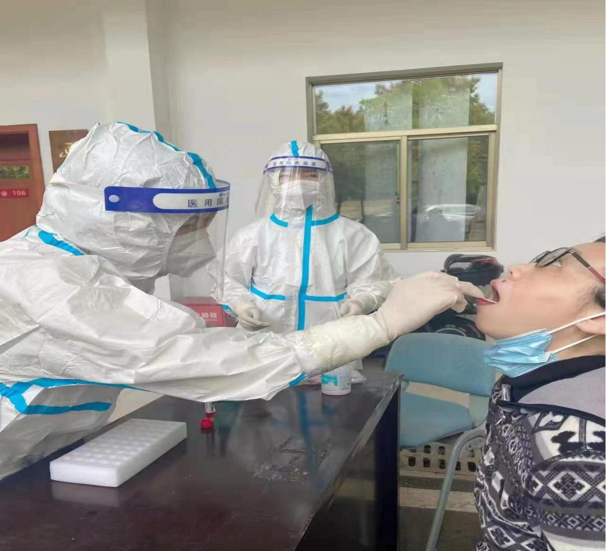刘京在抗疫一线为群众做核酸采样