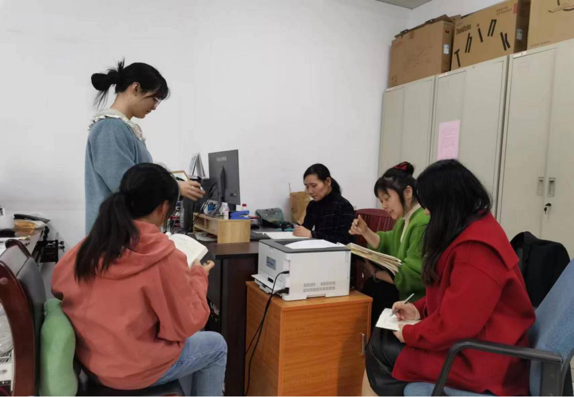 结算一部工作人员正在开会讨论业务工作