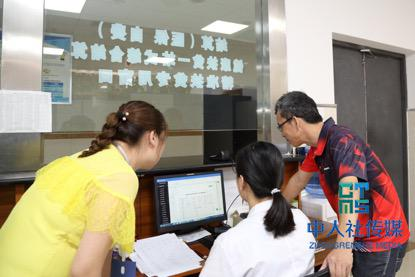 2019年7月16日,湘潭市医疗保障局工作人员在湘潭医卫职院附属医院(湘潭市三医院)健康扶贫“一站式”结算窗口检查建档立卡人员健康扶贫待遇落实情况。